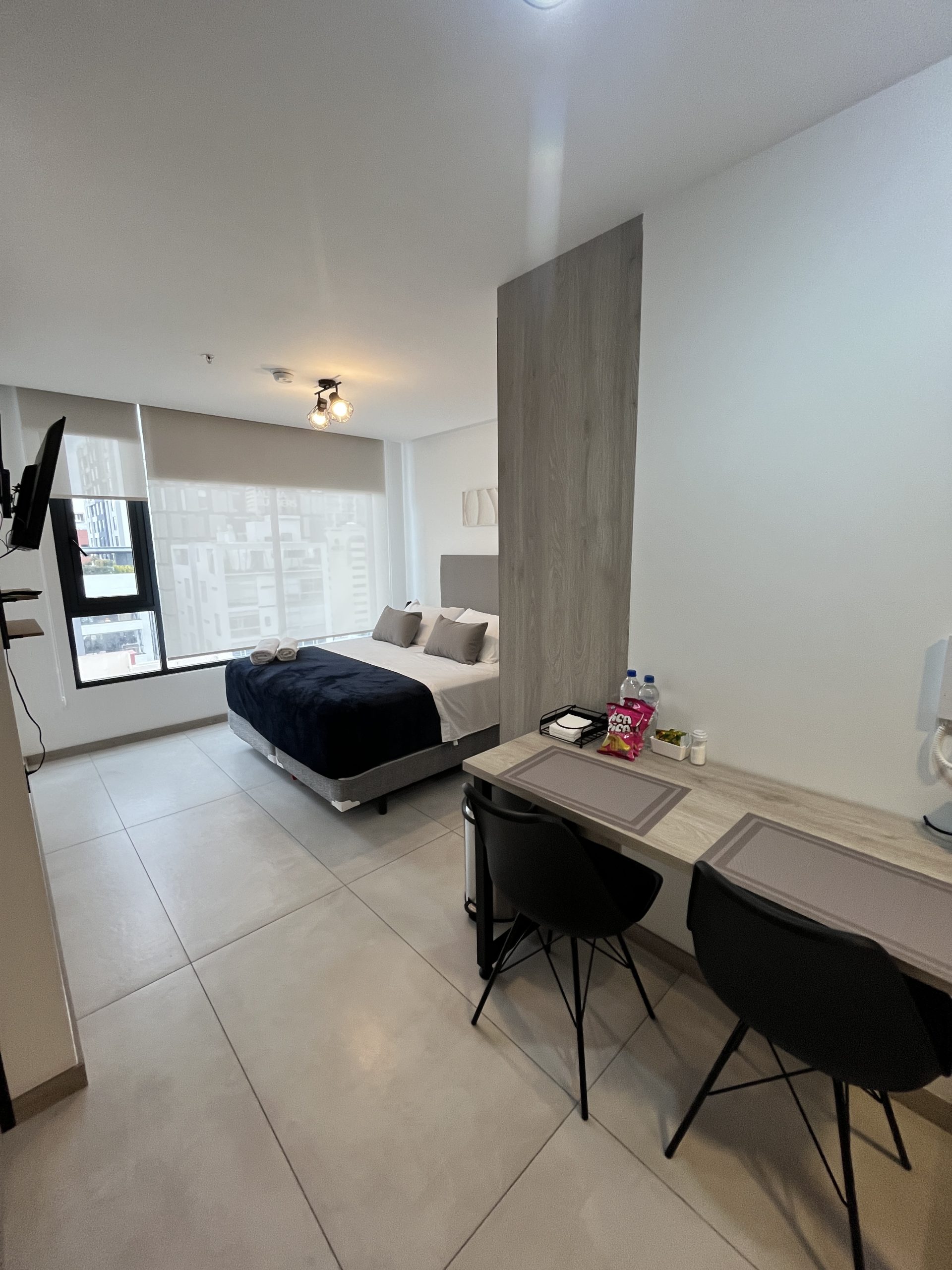 Hermoso estudio, por estrenar, totalmente equipado y lleno de luz natural. Ubicado a solo 5 minutos caminando del icónico Parque La Carolina y cerca de Quicentro, Mall El Jardín, Tuti y Megamaxi. A 12 minutos de la estación de metro La Carolina, tendrás fácil acceso a toda la ciudad. Ideal para descansar, trabajar o explorar Quito, con todo lo que necesitas al alcance de tu mano. ¡Reserva ahora y vive la experiencia desde un lugar único!.