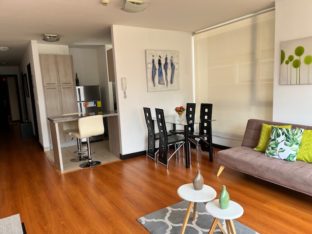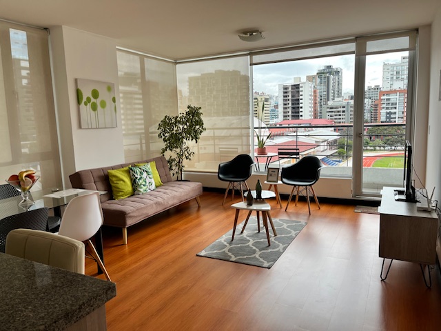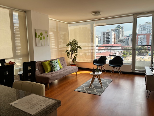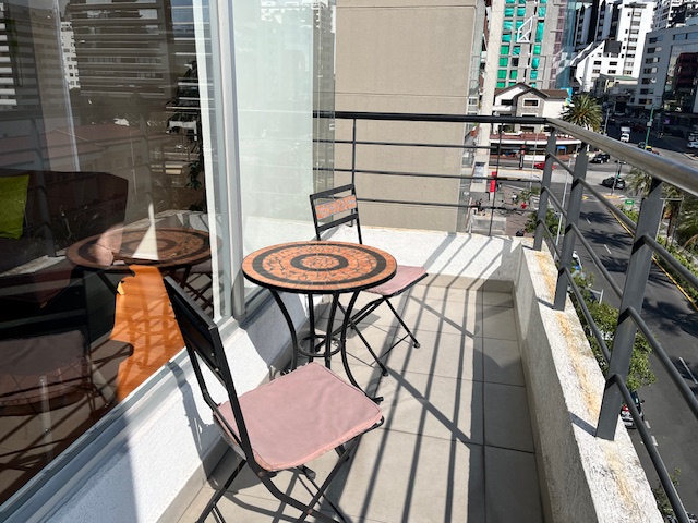 Ubicada en la calle Portugal y Republica del Salvador muy cerca de restaurantes, cafeterías, supermercados y el Parque La Carolina. Piso 5. Hermosa Vista, Elegante suite, sala, comedor con 4 puestos, cocina tipo americano, lavadora, secadora. Dormitorio con cama Queen y baño privado. Baño social, balcón, Parqueadero